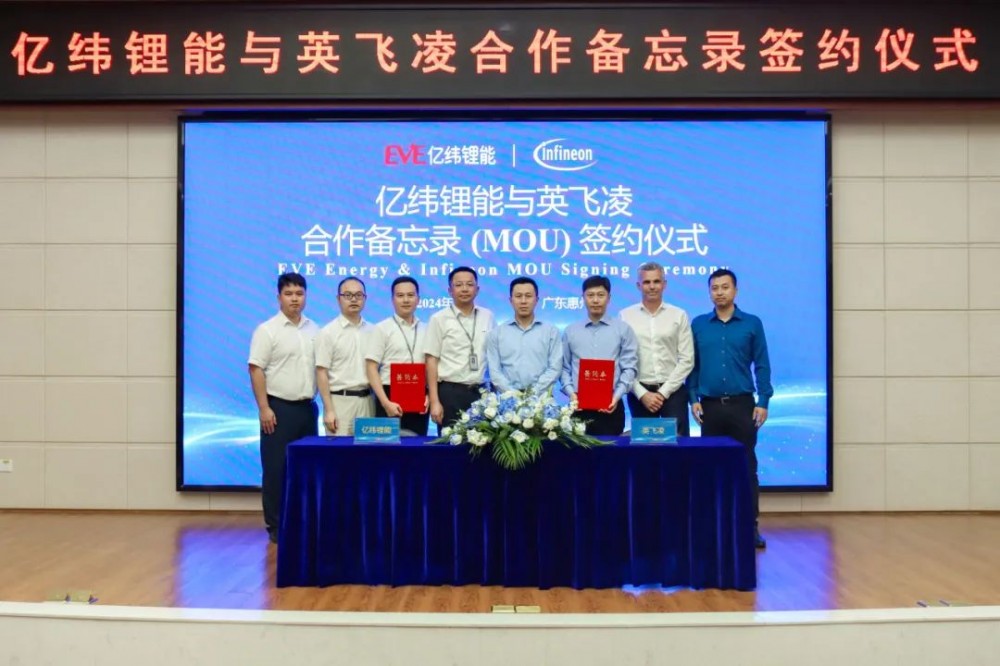 7月22日,亿纬锂能与英飞凌科技(上海)有限公司(以下简称“英飞凌”)在广东惠州签署合作备忘录,英飞凌科技高级副总裁及汽车业务大中华区负责人曹彦飞、副总裁Remmers Robert、高级销售总监万向军,亿纬锂能联合创始人、总裁刘建华,电池系统研究院院长江吉兵,电池系统研究院副院长万里平等双方领导出席并见证签约。英飞凌科技汽车业务动力与新能源系统大中华区负责人仲小龙、亿纬锂能供应链管理中心副总裁冯俊卿代表双方签约。