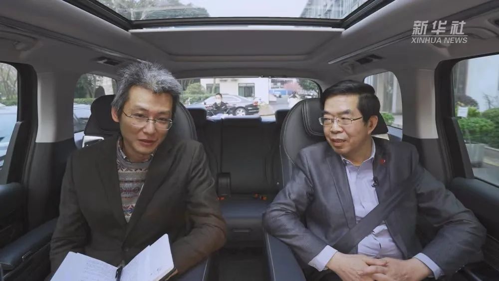 全国政协委员、民进中央副主席、上海交通大学碳中和发展研究院院长黄震(右)做客“新华社快看两会直通车”栏目