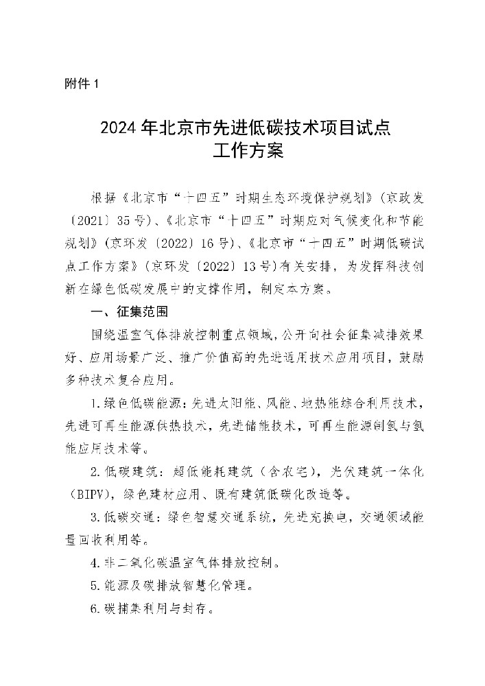 附件:1.2024年北京市先进低碳技术项目试点工作方案