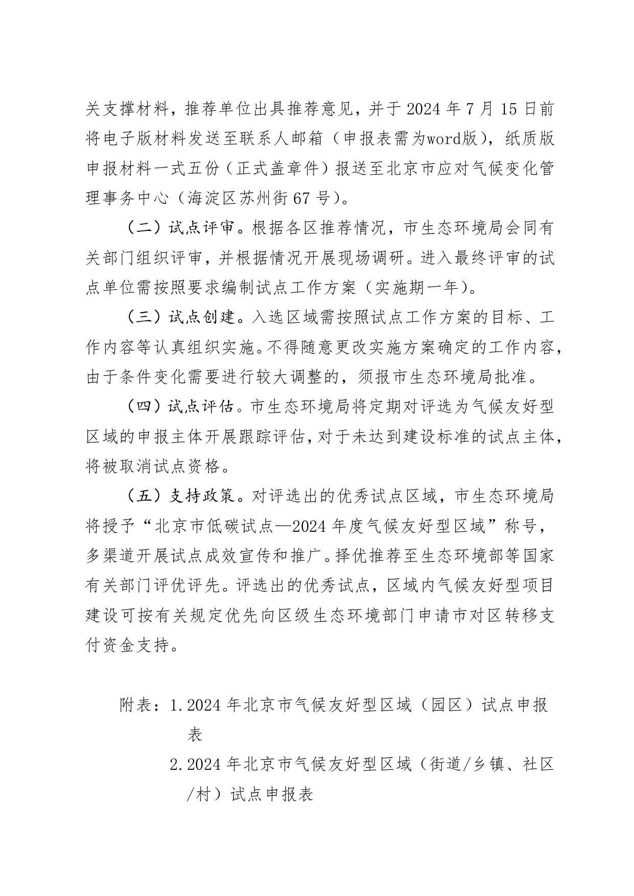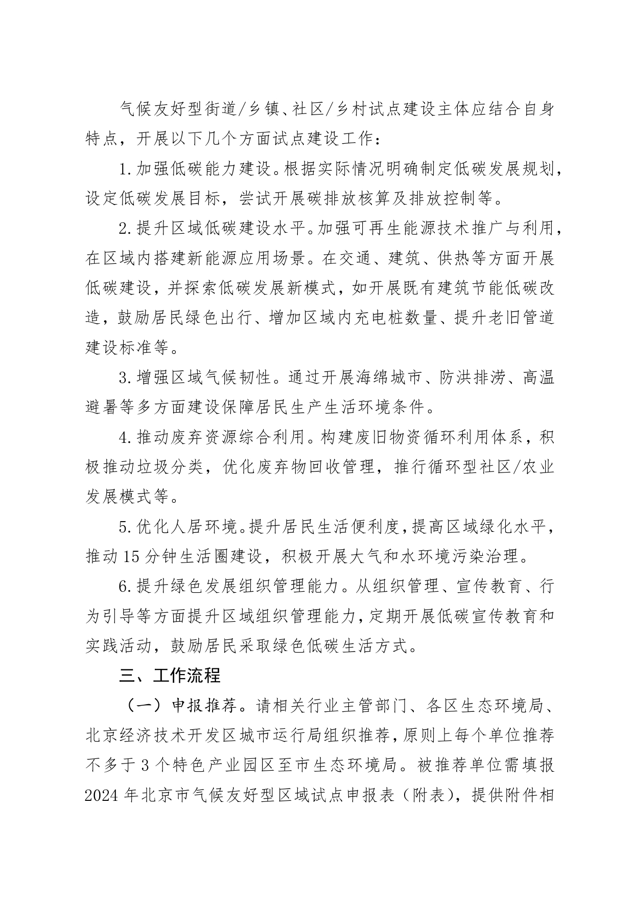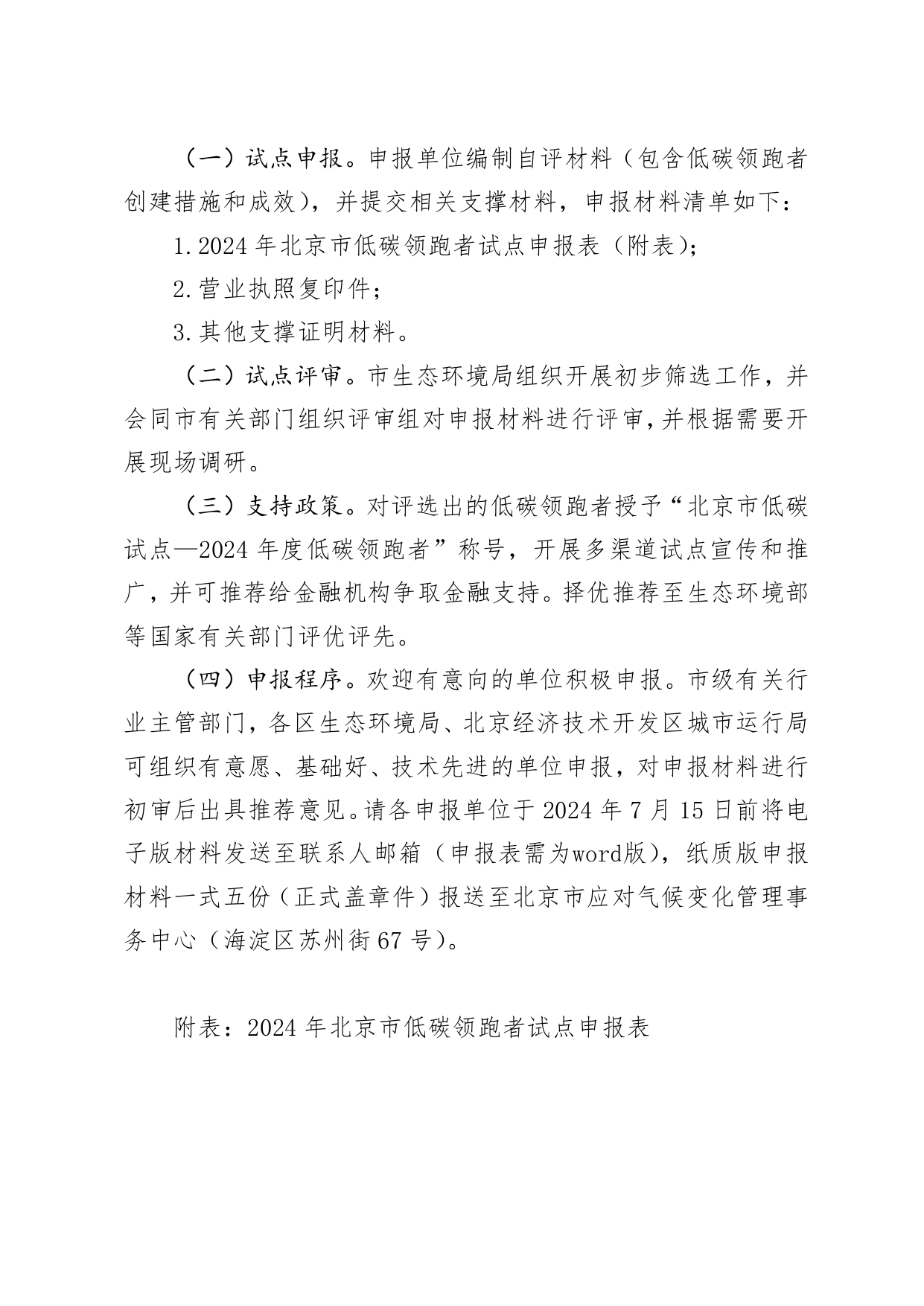 为深入推进本市应对气候变化工作,推动经济社会发展绿色低碳转型,根据《北京市“十四五”时期生态环境保护规划》《北京市“十四五”时期应对气候变化和节能规划》《北京市“十四五”时期低碳试点工作方案》有关安排,现就开展2024年低碳试点工作有关事项通知如下: