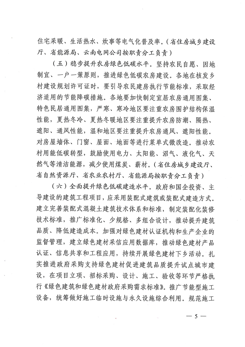 其中提到,云南省目标到2025年,建筑领域节能降碳制度体系更加健全,城镇新建建筑全面执行绿色建筑标准,建成一批高品质星级绿色建筑,组织开展超低能耗、近零能耗建筑试点示范工程建设,积极推动既有建筑节能改造,建筑用能中电力消费占比超过55%,城镇建筑可再生能源替代率达到8%,建筑领域节能降碳取得积极进展。到2027年,基本建立云南地域适应性建筑节能技术标准体系,建筑能耗强度和碳排放强度处于全国较低水平,建成一批绿色低碳高品质建筑,统筹推进既有建筑节能改造,建筑领域节能降碳取得显著成效。