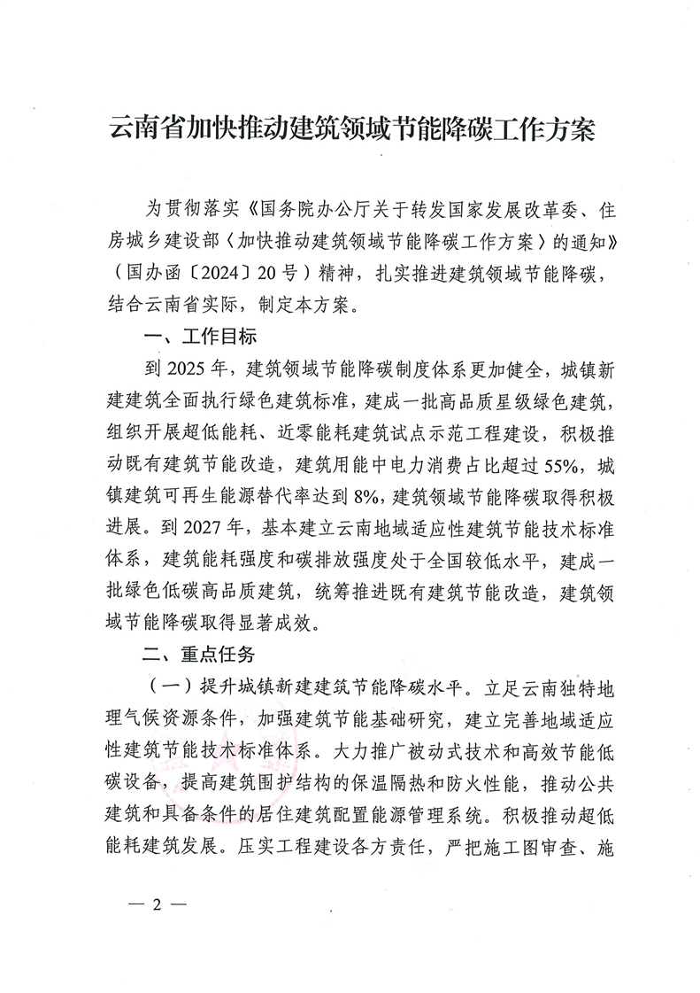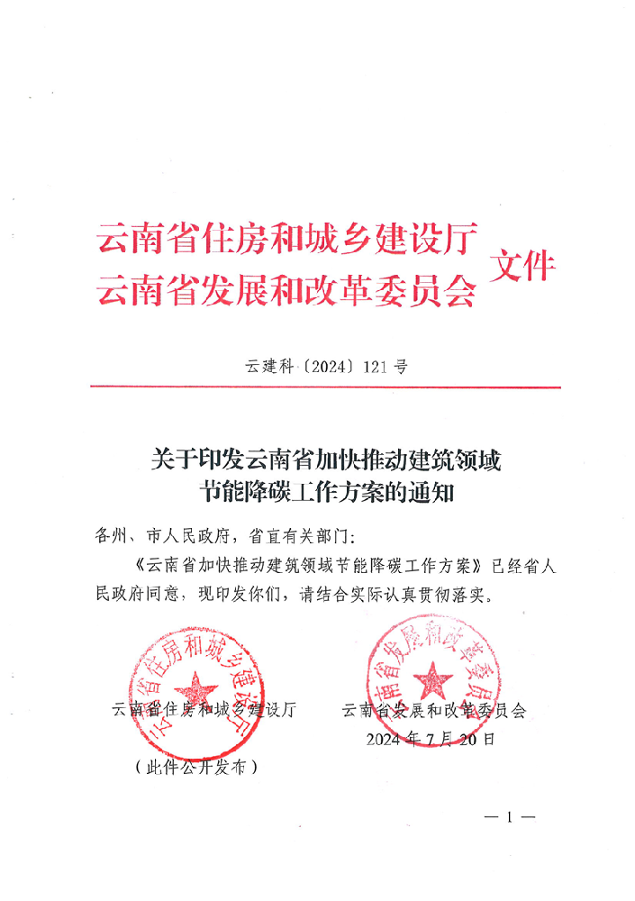 7月20日,云南省住房和城乡建设厅、云南省发展和改革委员会发布关于印发云南省加快推动建筑领域节能降碳工作方案的通知(云建科〔2024〕121号)。