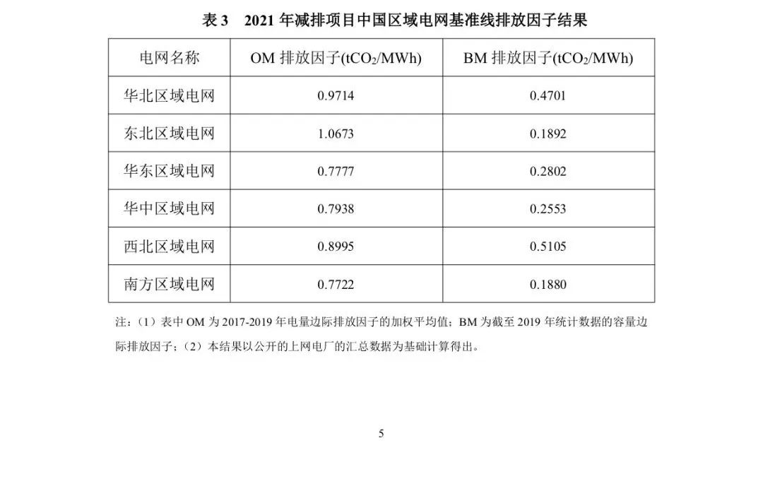 2021年度减排项目中国区域电网基准线排放因子