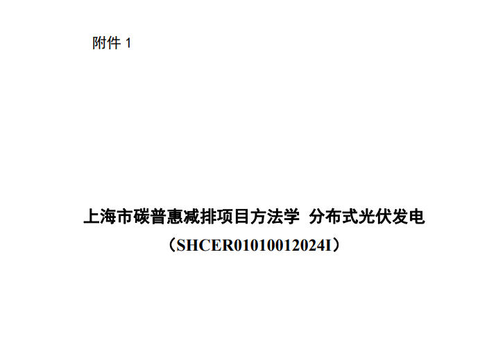 为加快推进我市碳普惠体系建设,引导绿色低碳生活方式,根据《上海市碳普惠管理办法(试行)》的有关规定,经专家技术论证,现发布《上海市碳普惠减排项目方法学 分布式光伏发电(SHCER01010012024I)》等六个碳普惠方法学。