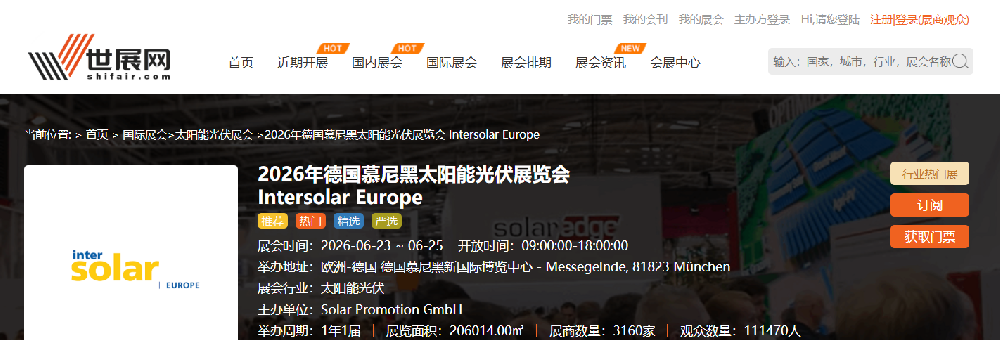 2026年德国慕尼黑太阳能光伏展览会 Intersolar Europe
