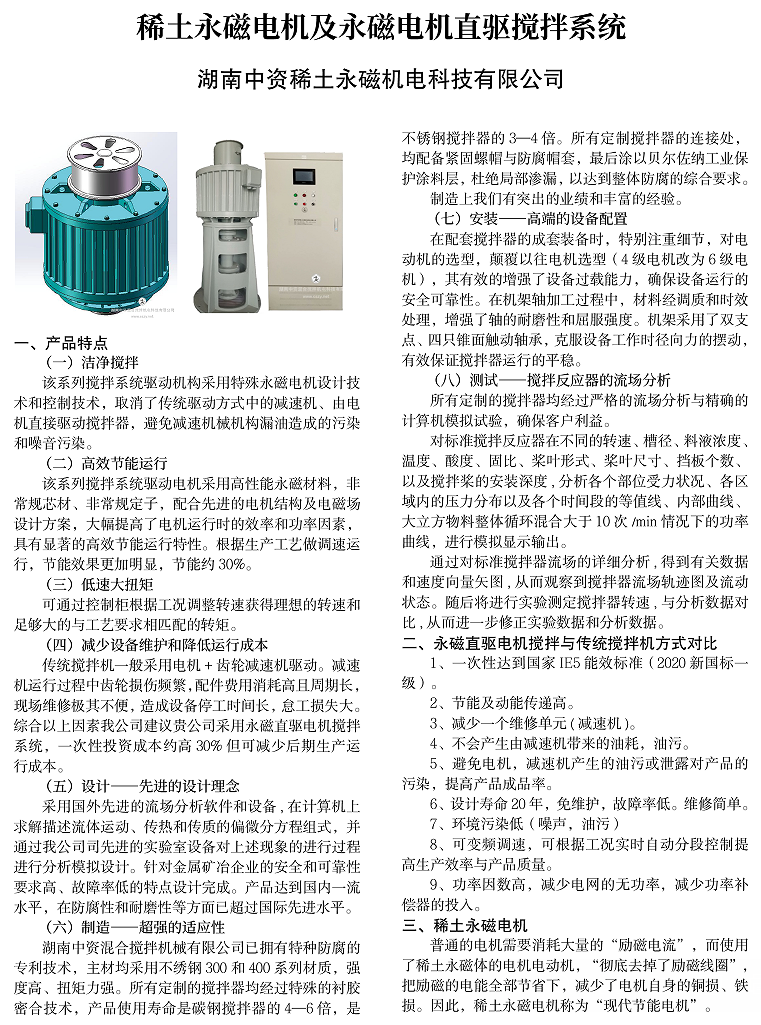 湖南中资稀土永磁机电科技有限公司 产品/技术概述