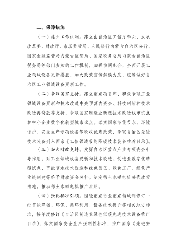 关于印发《内蒙古自治区推动工业领域设备更新实施方案》的通知