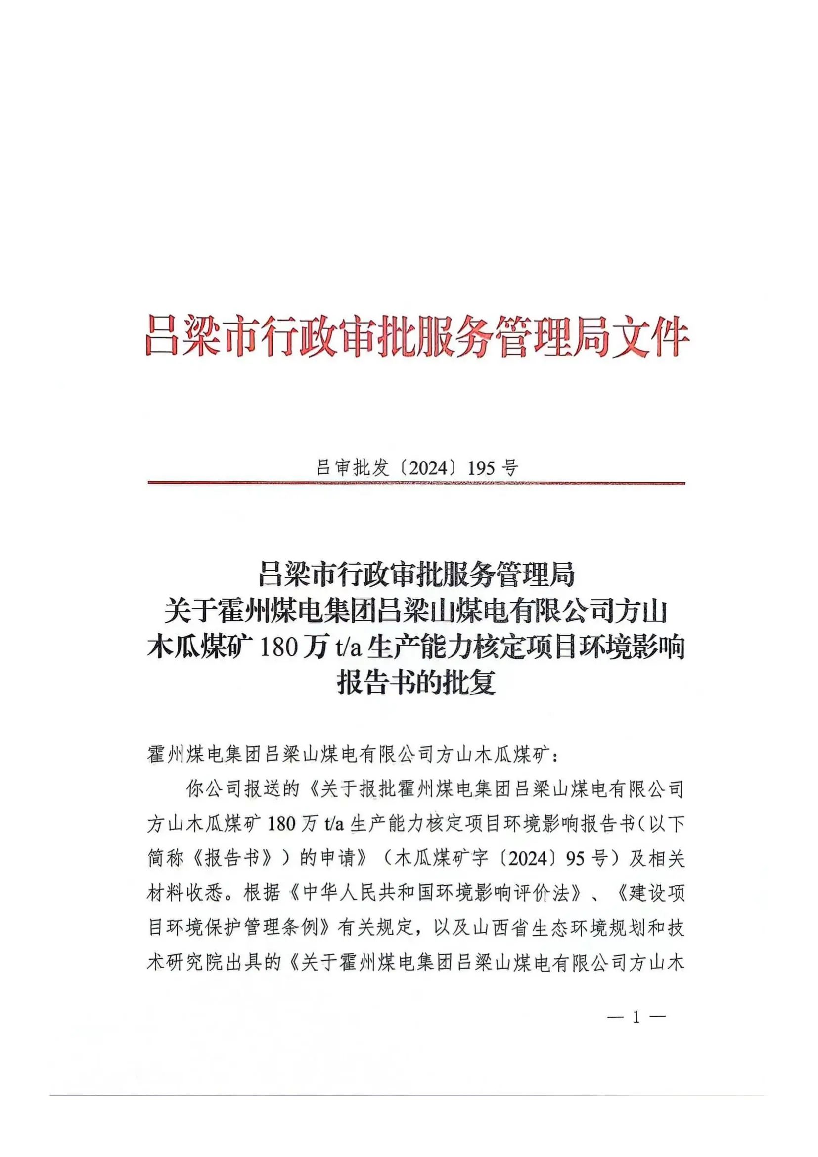 一件接着一件办,一张蓝图绘到底。为尽快完成矿井产能核增工作,该矿实行工作推进“责任制+清单制”,挂图作战,分析障碍因素,落实瓶颈制约,安排专人跟进,定期组织召开产能核增推进会,及时研究解决推进过程中存在的问题,对涉及全局的难点问题建立联动机制,在最短时间内完成了《产能核增置换方案》编制工作,并通过层层传递上报,期间进行了多次修改完善,历经两年多的时间,最终取得国家发改委核增生产能力产能置换方案的复函。在取得复函的基础上,于5月15日取得吕梁市行政审批服务管理局180万吨/年环境影响报告书的批复。