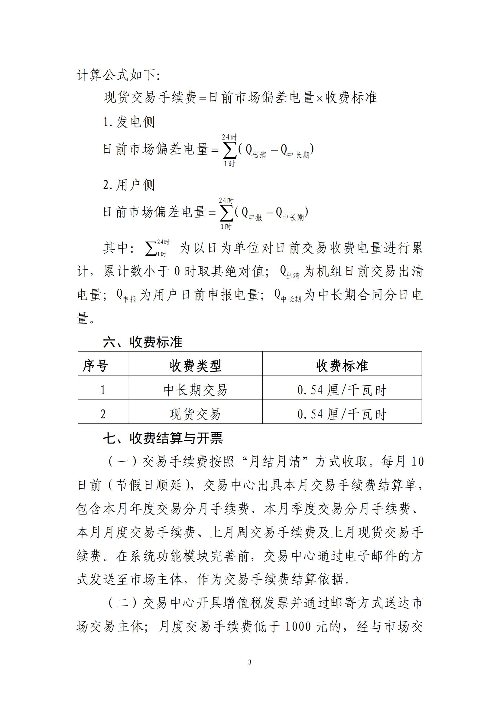 收费标准是中长期交易0.54 厘/千瓦时,现货交易0.54厘/千瓦时。
