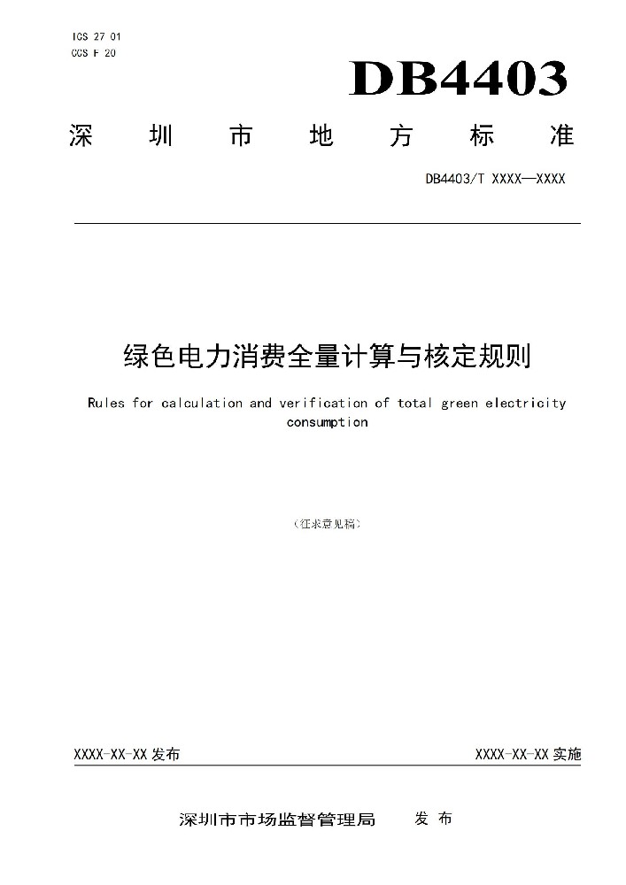深圳市发展和改革委员会关于公开征求 《绿色电力消费全量计算与核定规则 (征求意见稿)》地方标准意见 的通告