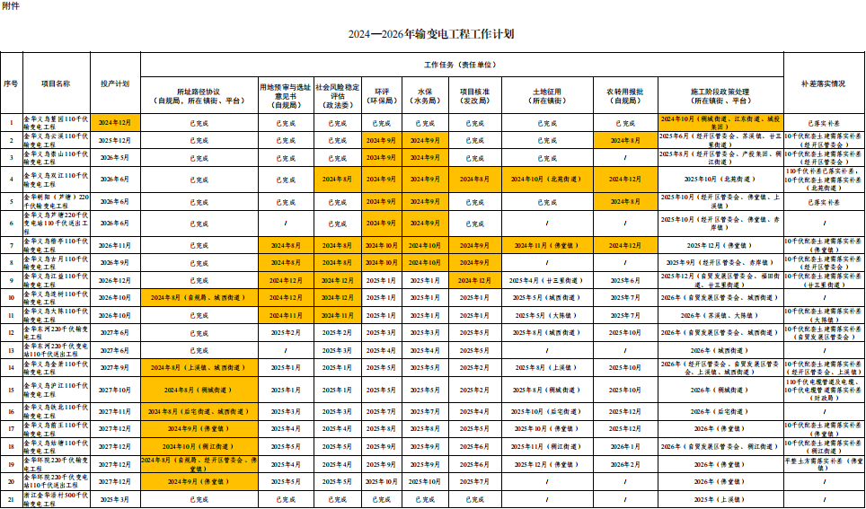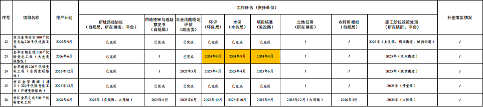 6.高效推进电网项目建设。市府办负责统筹协调推进本计划项目建设过程中的重难点问题。生态环境分局负责牵头落实本计划工程清单内工程的环评批复和环保验收工作。水务局负责牵头落实本计划工程清单内工程水土保持方案的批复和验收工作。各镇街、平台负责落实本计划项目的站址路径选择,积极提供合理站址和路径,配合自规局完成项目用地征收,项目实施过程中落实需由镇街、平台补差的资金。供电公司负责开展项目全过程管理,主动对接各部门开展各项工作,及时上报需协调解决的难点问题。