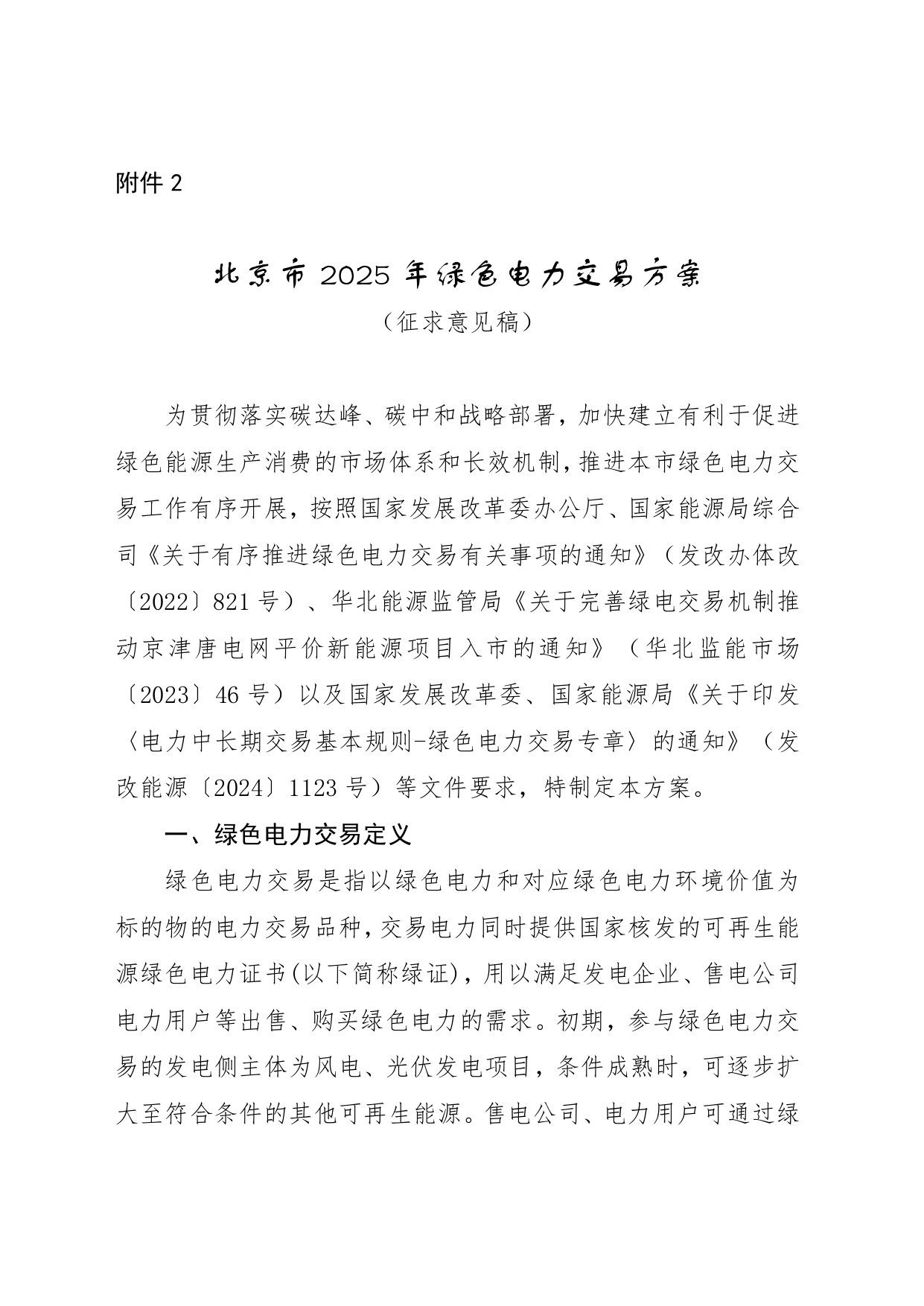 北京市城市管理委员会发布关于对《北京市2025年电力市场化交易方案(征求意见稿)》《北京市2025年绿色电力交易方案(征求意见稿)》公开征求意见的公告,现向社会公开征求意见。