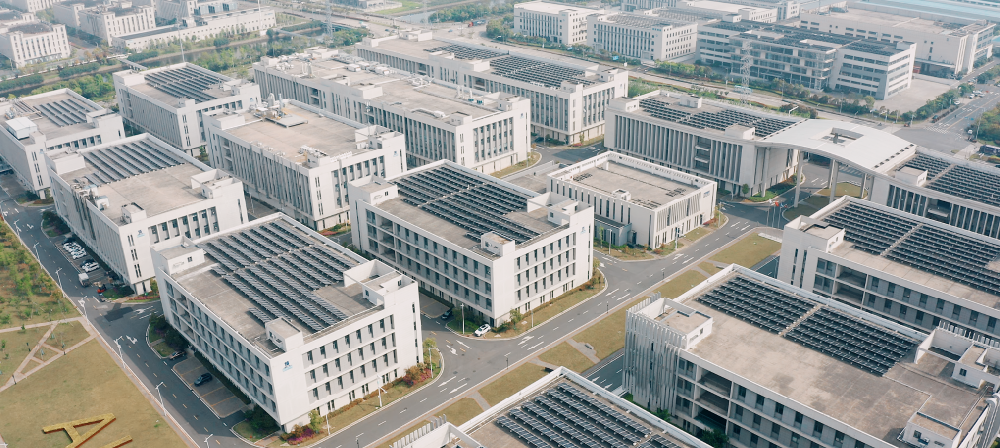 图为宁波前湾新区数字经济产业园二期的屋顶光伏项目(无人机照片)。(戚佳东 摄)