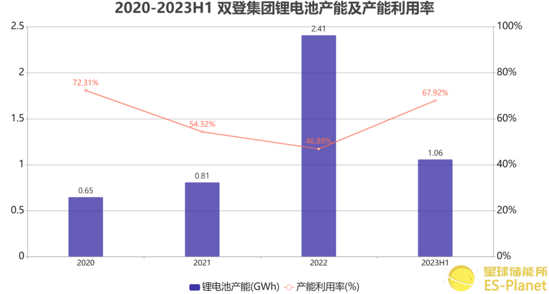 以上月初宣告终止IPO进程的双登集团为例,自2020年至2023年上半年,公司锂电池产能分别为0.65 GWh、0.81GWh、2.41GWh和1.06GWh,产能利用率则仅有72.31%、54.32%、46.89%及67.92%。