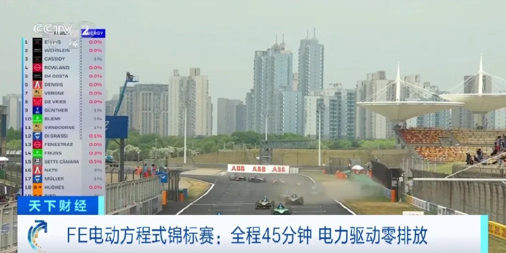 在25日进行的本赛季电动方程式锦标赛第十一轮正赛中,捷豹车队车手米奇·埃文斯率先冲过终点,赢得冠军。由于完全以电驱动,FE赛车行进过程中产生的噪音约为80分贝,明显低于F1赛车全速行驶时160分贝的声浪,而且全程无尾气排放。即便如此,在全程45分钟、29圈的比赛里程中,依然可以感受到赛场的紧张与刺激。