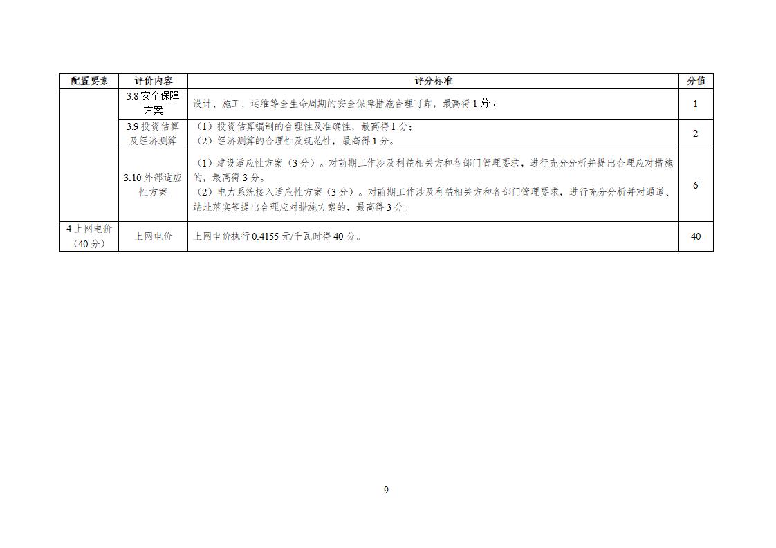 专家评审采用综合评分法,主要包括企业能力(20分)、设备先进性(10分)、技术方案(30分)、申报电价(40分)等竞争要素,详细评分指标和分数权重详见附件。