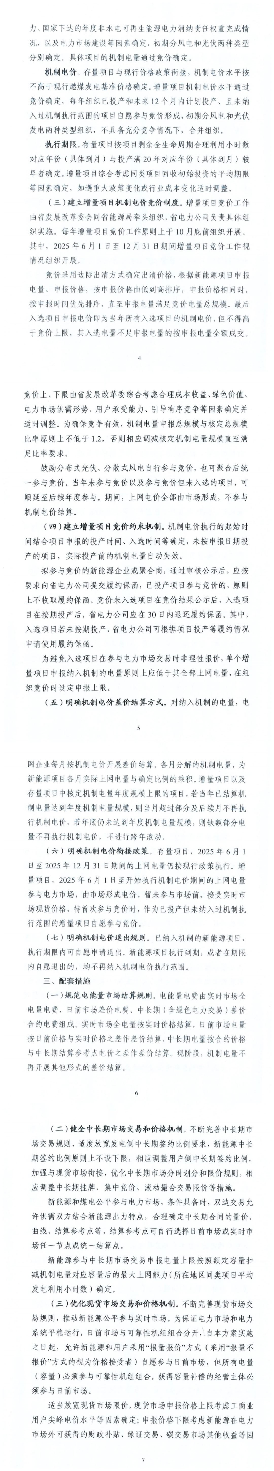 机制电量:存量项目机制电量规模,与现行具有保障性质的相关电量规模政策衔接,按照具体项目核定机制电量比例(机制电量占上网电量的比例),新能源项目可在核定值范围内每年自主确定机制电量比例,但不得高于上一年。增量项目机制电量规模,与现有新能源非市场化电量比例适当衔接,考虑用户承受能力、国家下达的年度非水电可再生能源电力消纳责任权重完成情况,以及电力市场建设等因素确定,初期分风电和光伏两种类型分别确定。具体项目的机制电量通过竞价确定。