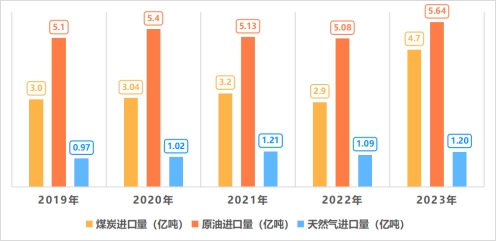 富煤贫油少气是我国国情。2023年我国原油进口5.64亿吨,对外依存度 73.6%;天然气进口1.2亿吨,对外依存度约为42.6%。