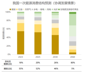持续加大非化石能源供给,促进水风光氢天然气等多能互补发展,深入推进工业、建筑、交通等领域电能替代。据分析,我国一次能源消费总量预计在2030年至2035年间达峰、峰值在62亿吨标煤以上。届时,非化石能源占比在30%左右。