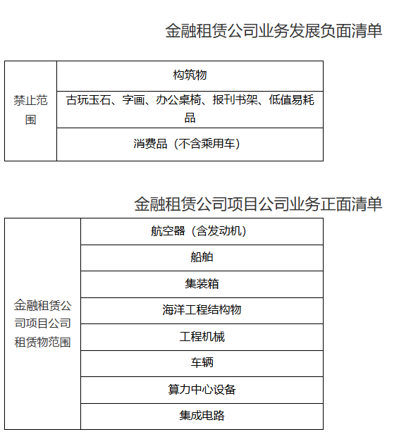 五、金融监管总局将根据国家政策导向、相关政策文件要求和金融租赁公司业务发展情况,适时对清单进行更新和调整,并通过金融监管总局网站对外公布。