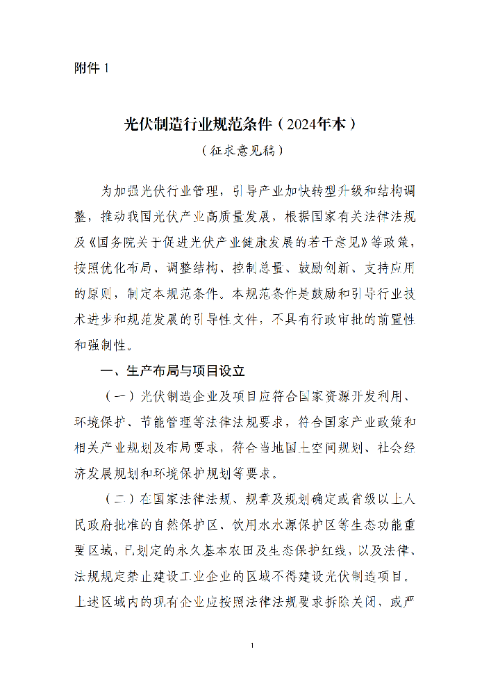 7月9日,工信部对《光伏制造行业规范条件(2024年本)》《光伏制造行业规范公告管理办法(2024年本)》(征求意见稿)公开征求意见。