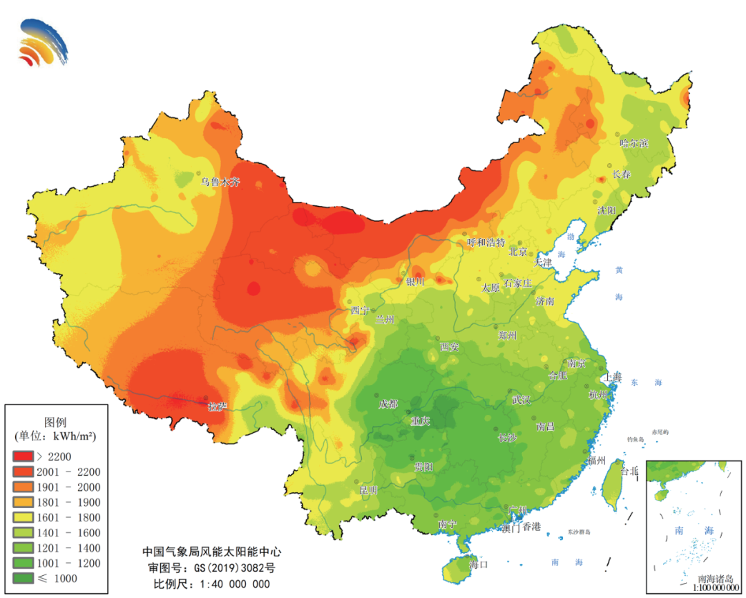 根据我国太阳能资源总量等级划分标准《太阳能资源等级 总辐射》(GB/T 31155-2014)1, 2024 年,西藏大部、青海中北部、四川西部等地年水平面总辐照量超过 1750kWh/m2 , 为太阳能资源最丰富区; 新疆、西藏东部、内蒙古大部、西北地区中西部、华北大部、西 南地区西部、华东北部等地年水平面总辐照量 1400kWh/m2 至 1750kWh/m2 ,为太阳能资 源很丰富区;东北大部、西北地区东部、华中、华东中南部、华南等地年水平面总辐照量1050kWh/m2 至 1400kWh/m2 ,为太阳能资源丰富区;西南地区东部、华中西部等地全国年 水平面总辐照量小于 1050kWh/m2,为太阳能资源一般区。