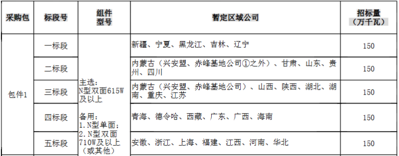招标公告显示,本次采购产品具体为主选N型双面615W及以上,备用:1、N型单面;2、N型双面710W及以上(或其他)。