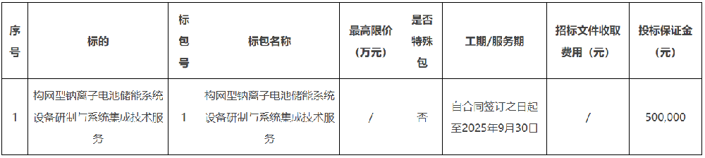 南网储能公司储能科研院构网型钠离子电池储能系统设备研制与系统集成技术服务招标公告