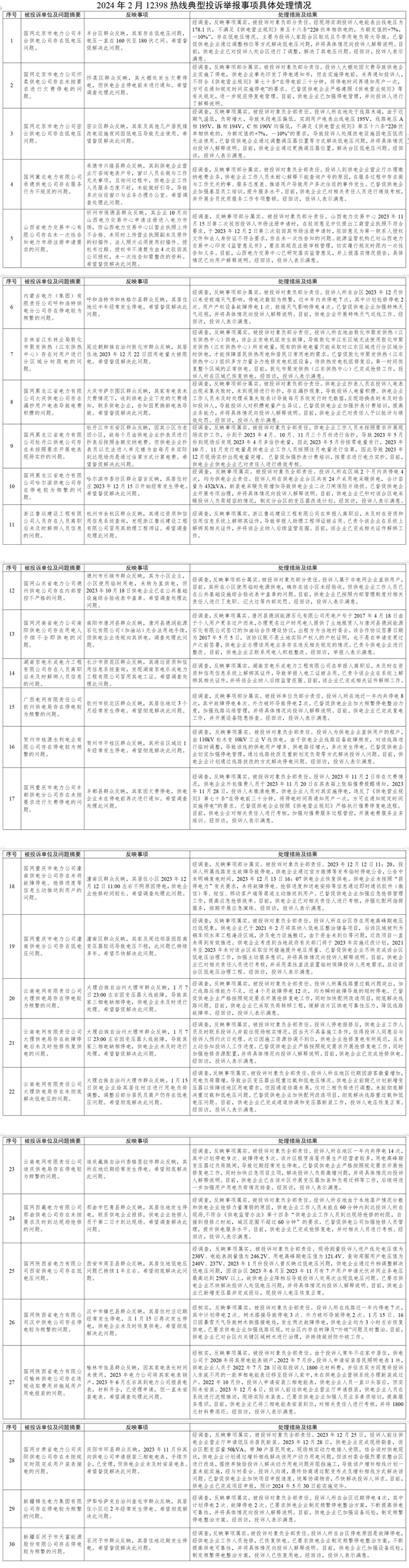 2024年2月,国家能源局12398能源监管热线(以下简称12398热线)共接收投诉举报432件,办结投诉举报526件(含往期结转)。现将有关情况通报如下: