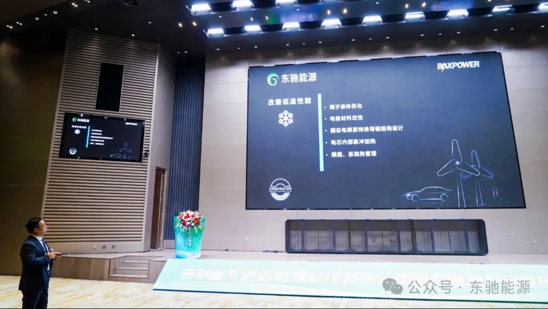 东驰能源董事长在致词中讲到:“吉林省东驰新能源科技有限公司是一家专注于聚合物固态锂电池的研发与生产的高新技术混合制企业,公司技术依托于东北师范大学锂电研发团队,依托教育部、科技部、发改委等七部委成立的“固态电池协同创新平台”,依托国家发改委“动力电池国家地方联合工程实验室;迄今公司拥有60余项聚合物固态电池发明专利,开发出了半固态储能电池、准固态动力电池系列产品,技术处于固态电池行业领先水平。2023年公司投资1.5亿元,历经一年建设了0.5GWh的固态电池示范线,用于产品的技术研发和迭代升级,同时我们与温州冠盛汽车零部件集团股份有限公司成立了浙江冠盛东驰合资公司,投资20亿元开建了年产4GWH半固态储能电池生产基地。东驰能源作为国内首家聚合物固态电池的产业化企业,以推动中国固态电池跨越式发展为己任。公司秉承敬业之心,把握行业发展的脉搏,用专业铸就品质、用创新诠释未来。”