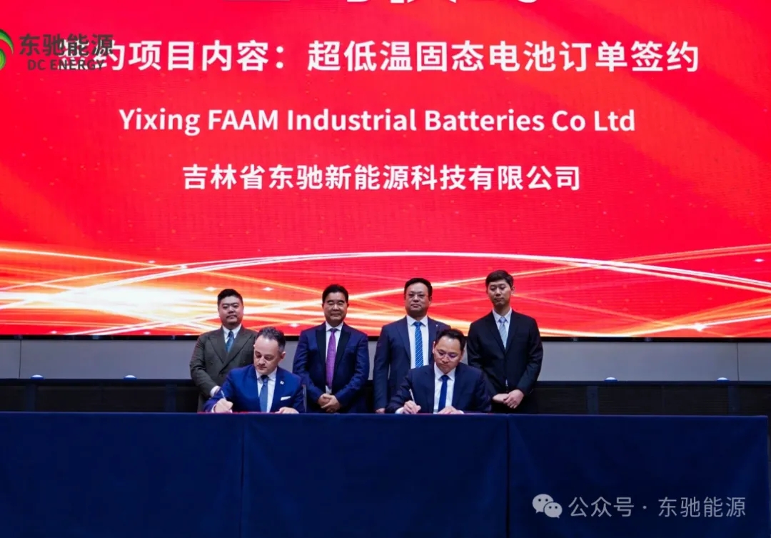 2024年5月30日,吉林省东驰新能源科技有限公司举办了隆重的固态电池产品下线仪式。同时,东驰能源分别与吉林省能源投资集团有限责任公司,西安西电电力系统有限公司签定了战略合作协议,与Yixing FAAM Industrial Batteries Co Ltd签定了采购订单,同时还与盐城达翔新能源有限公司签定了船用固态电池项目。