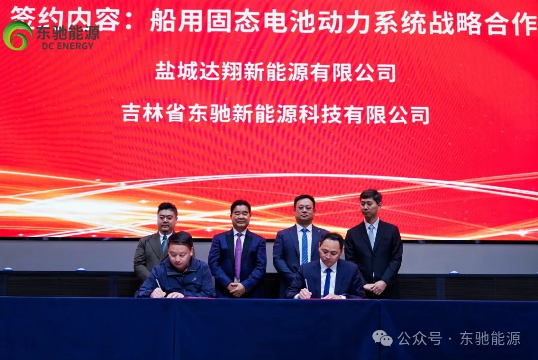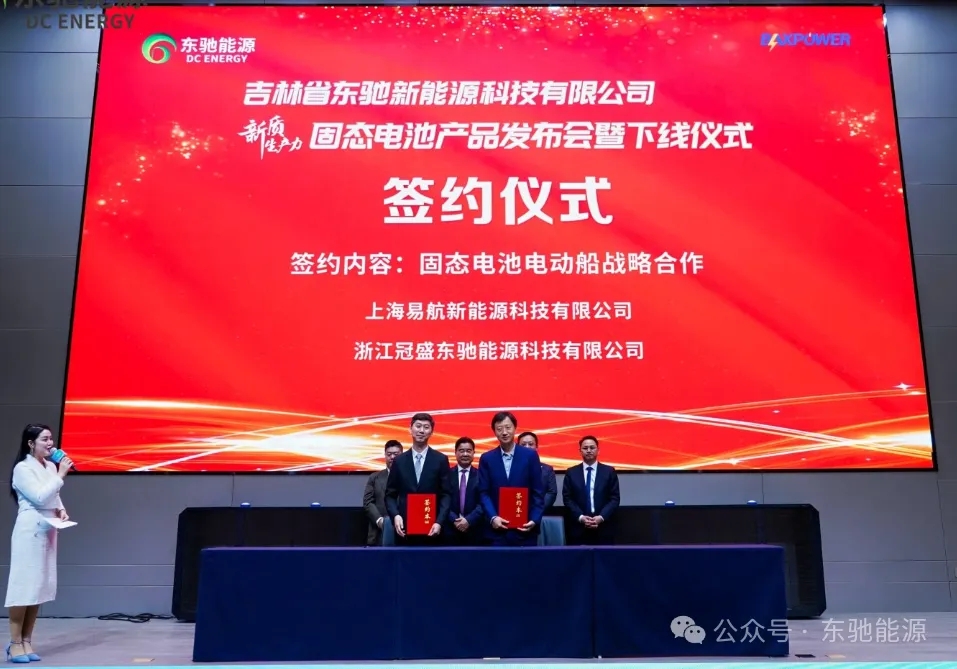签约环节中,东驰能源分别与吉林省能源投资集团有限责任公司,西安西电电力系统有限公司签定了战略合作协议,Yixing FAAM Industrial Batteries Co Ltd签定了采购订单,盐城达翔新能源有限公司签定了船用固态电池项目。浙江温州冠盛东驰能源科技有限公司与上海易航新能源科技有限公签定了固态电池电动船项目合作。