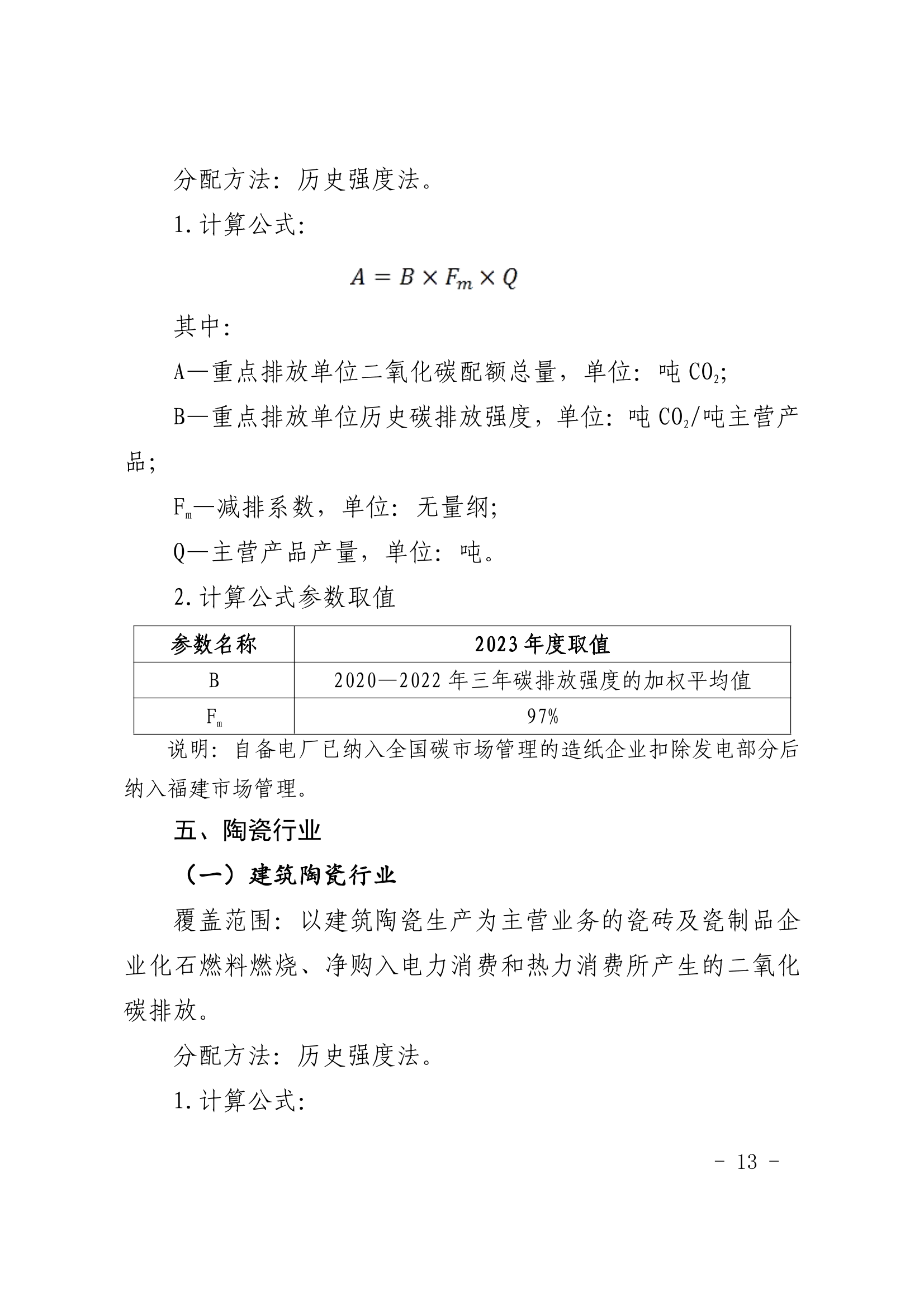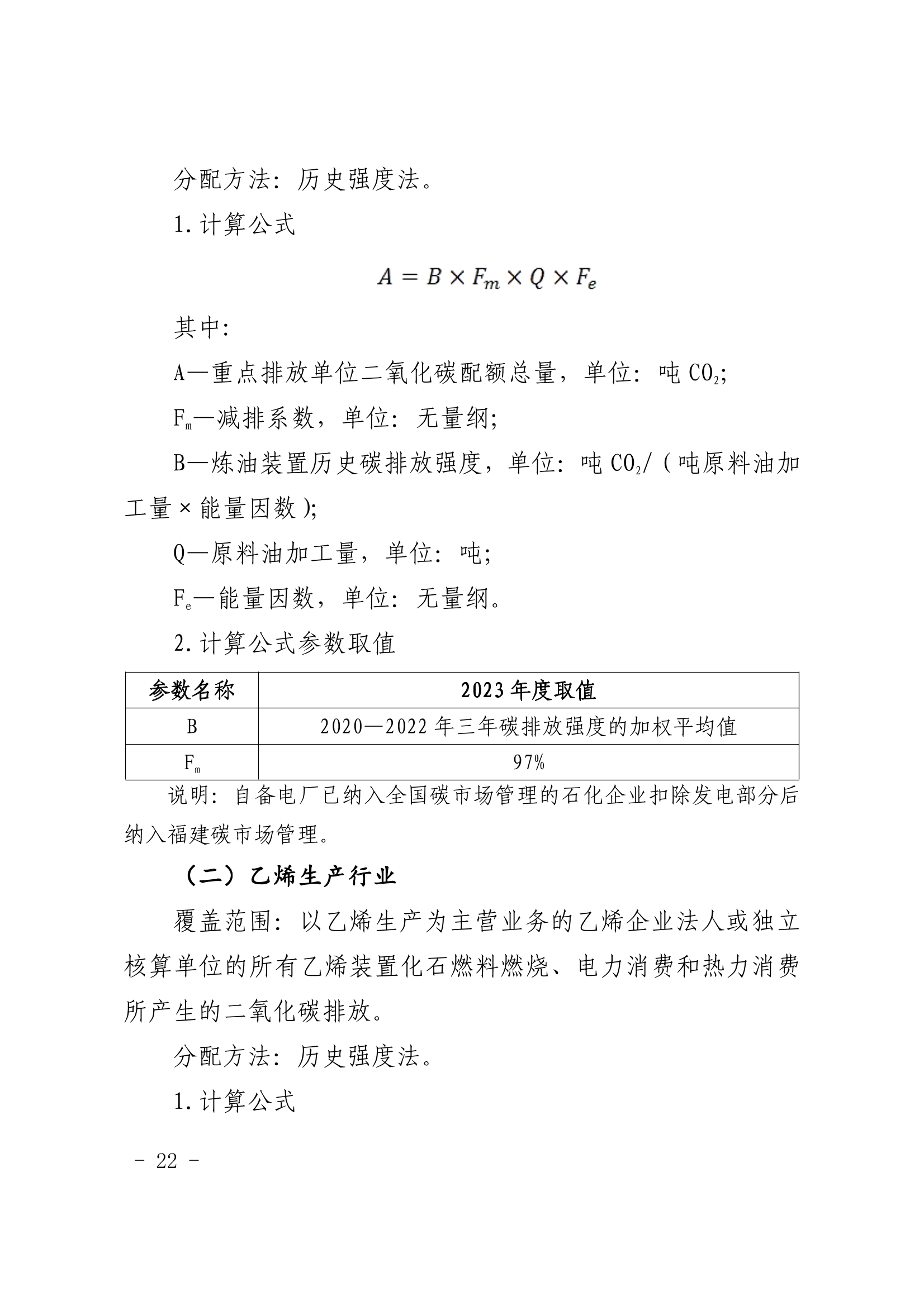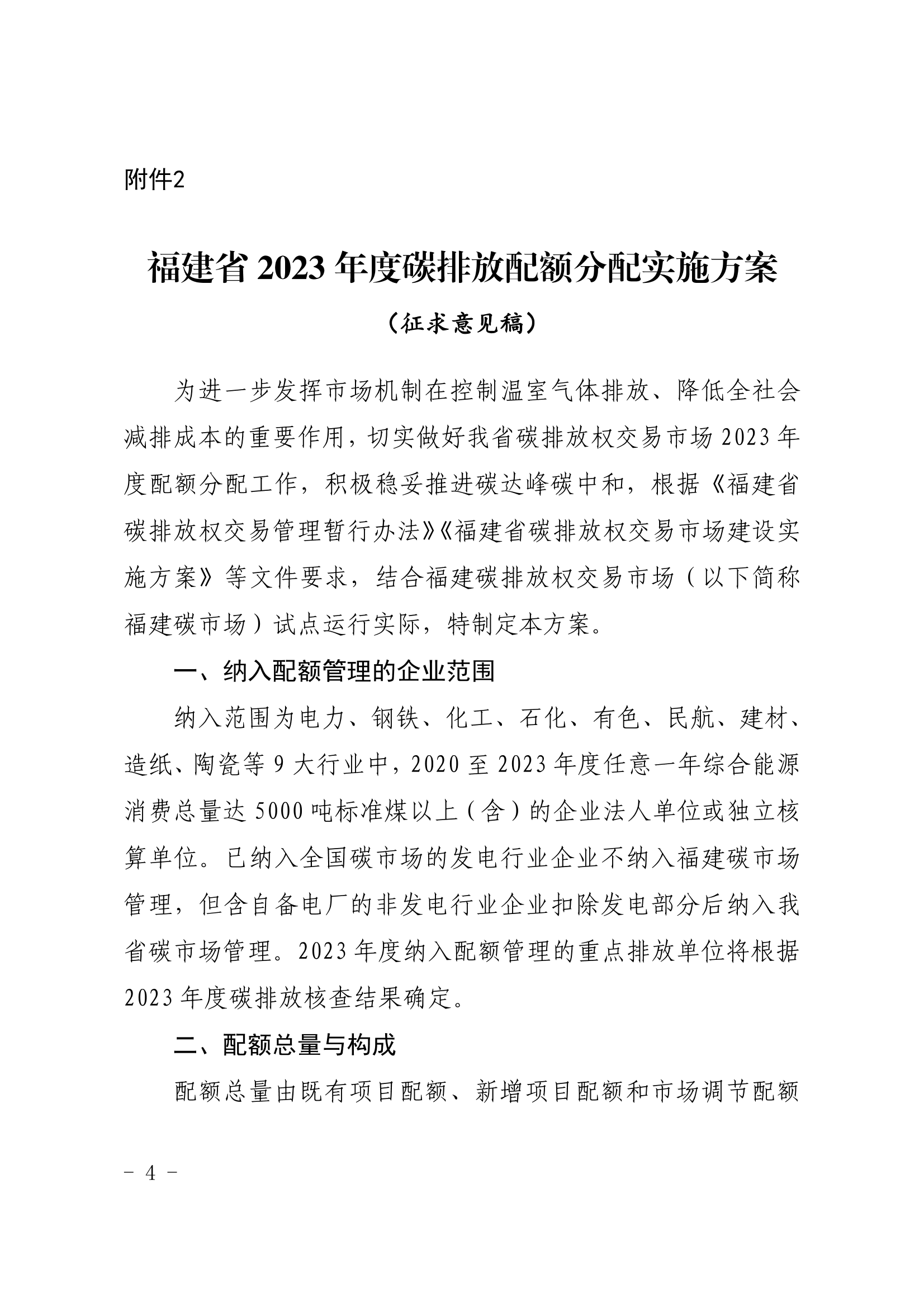 日前,福建省生态环境厅印发《福建省2023年度碳排放配额分配实施方案》(征求意见稿)。
