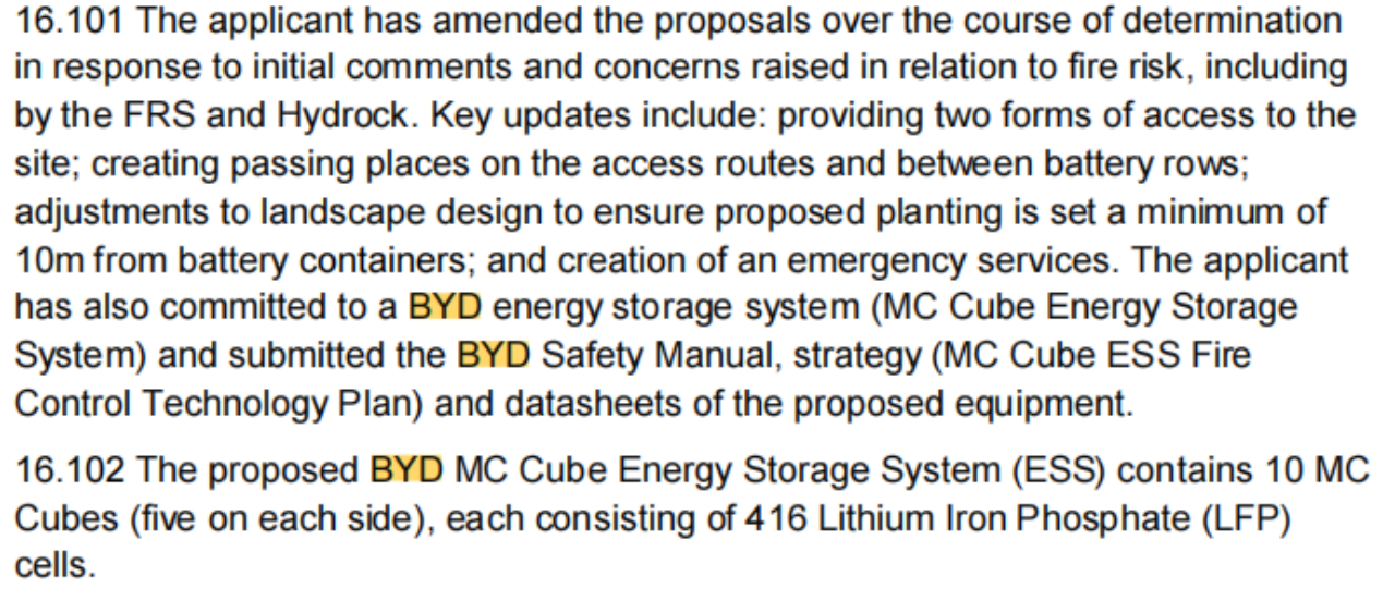 Statera 尚未公开表示计划使用哪家 BESS 或系统集成商。不过,该项目的规划文件透露,其选择了比亚迪作为电池制造商。
