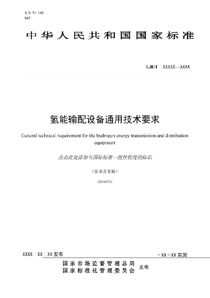 根据征求意见稿,该文件规定了氢能输配设备的要求、试验方法、检验规则、质量证明文件、标志、包装、运输和贮存,适用于城镇氢能输配系统用储存设备、过滤设备、调压设备、计量设备、安全防护设备、阀门、管道及附件、安全控制装置等设备。