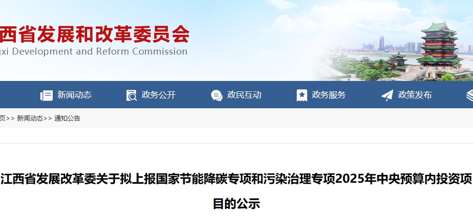 江西省发展改革委关于拟上报国家节能降碳专项和污染治理专项2025年中央预算内投资项目的公示