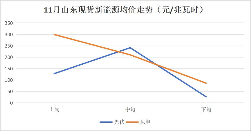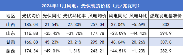 据“兰木达电力现货”统计,11月山西、山东、甘肃、蒙西光伏现货均价均不足0.2元/千瓦时,山东同比、环比均大幅下降。逐旬统计,山东11月下旬光伏均价甚至仅3分/度。