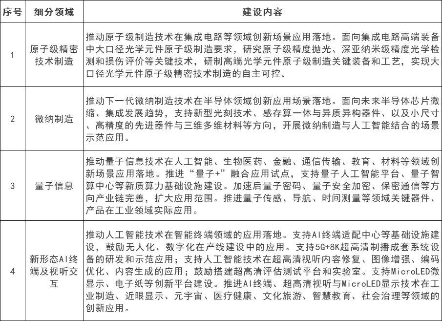 聚焦原子级精密技术制造、微纳制造、量子信息、新形态AI终端及视听交互、未来新能源材料与装备、深海重载作业和通信海缆产业装备、新型储能等10个细分赛道,支持技术方、集成商和场景方等组成产业链生态伙伴,贯通技术攻关、试验验证和产业化应用的全链条,打造“小切口、大产业”的细分赛道深度场景。