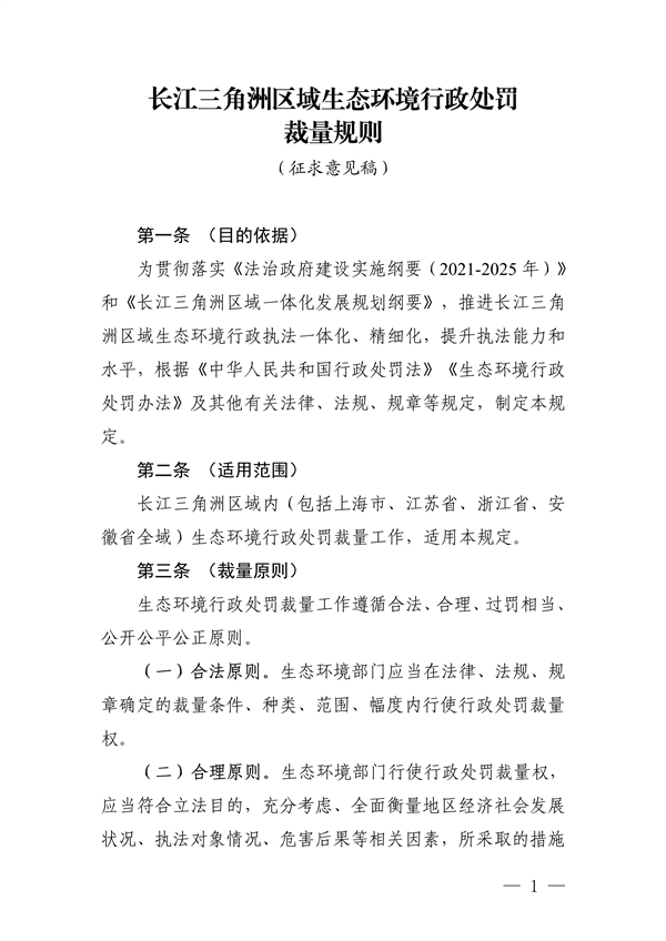 关于公开征求《长江三角洲区域生态环境行政处罚裁量规则》意见的通知