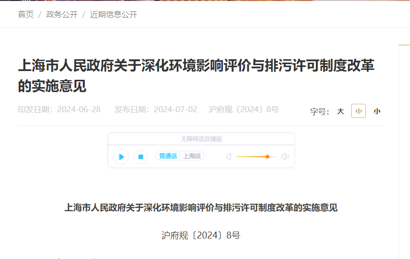 上海市人民政府发布关于深化环境影响评价与排污许可制度改革的实施意见,通过完善生态环境分区管控体系,优化规划环评管理机制,实施建设项目环评分类管理,推进排污许可审批制度改革,强化全链条制度衔接联动等措施,落实国家环境影响评价与排污许可改革工作部署,更好协调推进高水平保护和高质量发展。