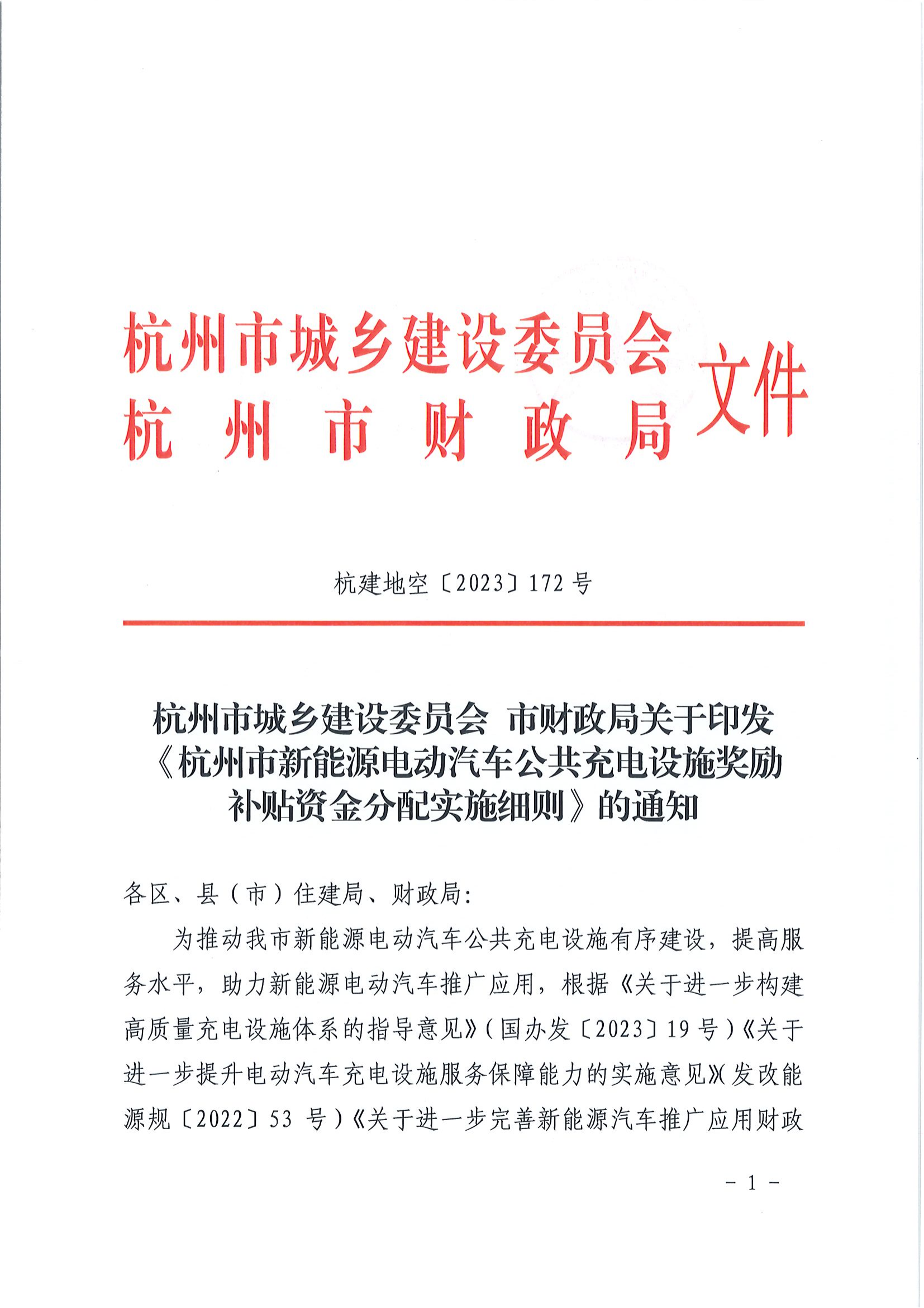 3.《杭州市新能源电动汽车公共充电设施奖励补贴资金分配实施细则》(杭建地空〔2023〕172号).pdf